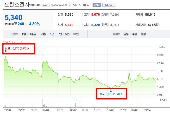 - 2025년 3월 28일 기준 종가는 5,340원을 기록했다.