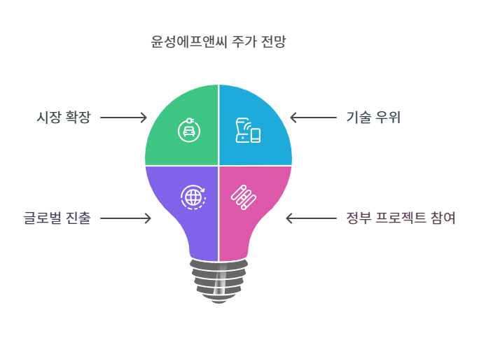 회사는 리비안 등 해외 고객사를 통해 글로벌 시장으로 확장 중이다. 2024년 12월 기사에 따르면, 중국 및 유럽향 수주가 증가하며 매출 다각화에 성공하고 있다. 글로벌 2차전지 제조사와의 협력 확대는 윤성에프앤씨의 성장 동력으로 작용한다.